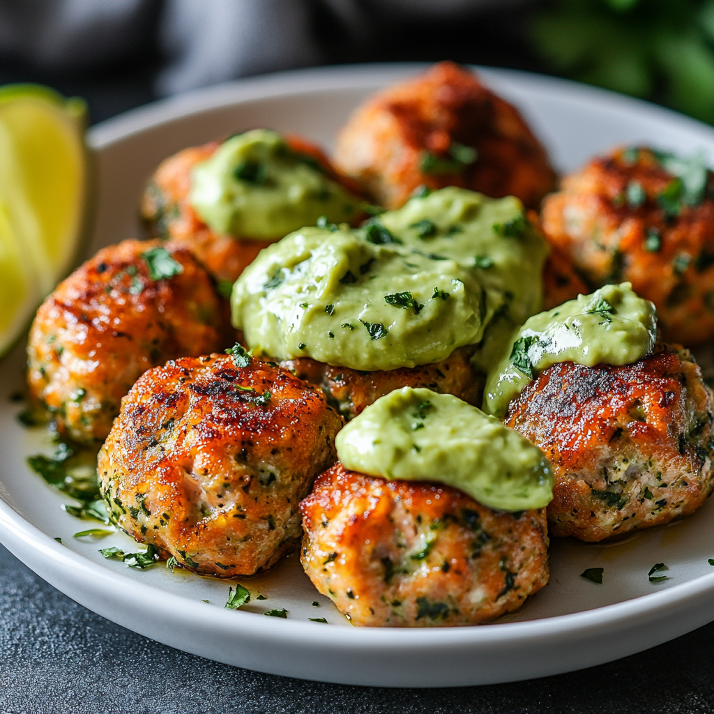 Baked Salmon Meatballs with Creamy Avocado Sauce