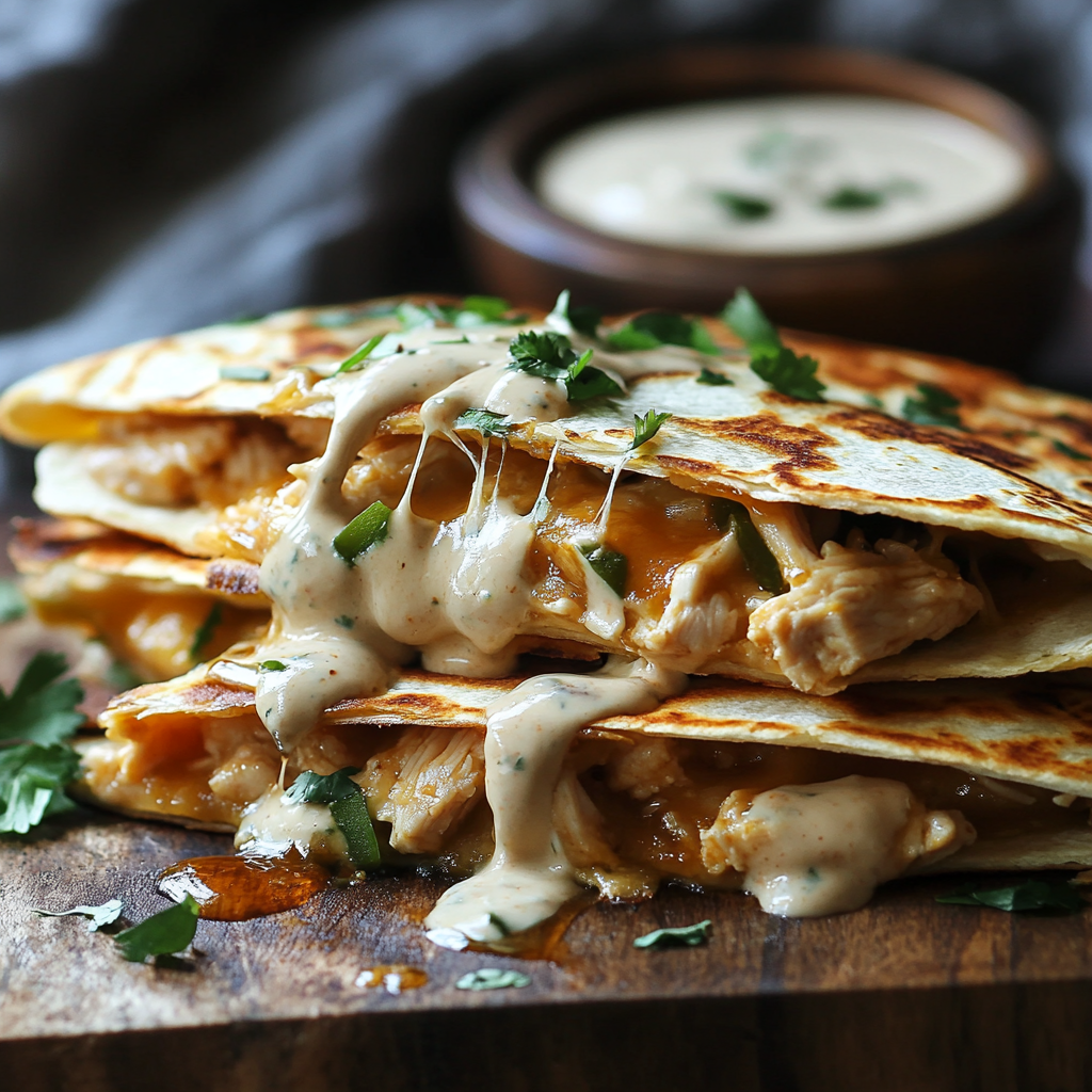 Cheesy Hot Honey Chicken Quesadillas with Spicy Jalapeño Cream Sauce